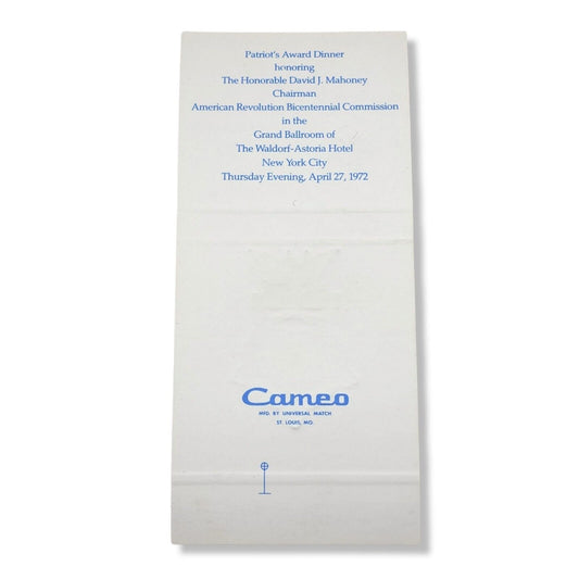 Congressional Medal of Honor Factory Sample Matchbook Cover Waldorf Astoria 1972