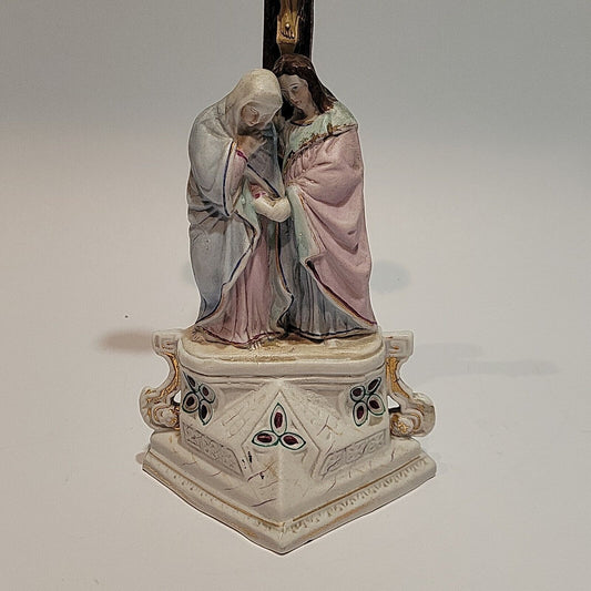 Antique 19th c Religious Vieux Paris Porcelain Crucifix Cross Mary Magdalene