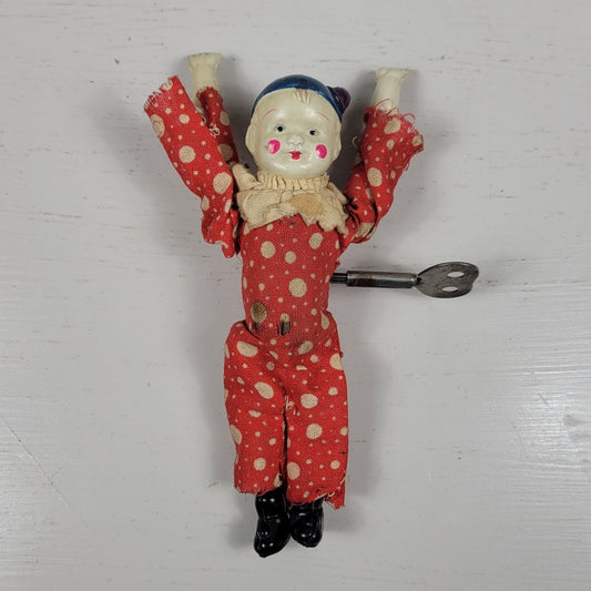 1930's Celluloid Tumbling Acrobat Clown Wind Up Toy with Key Vintage
