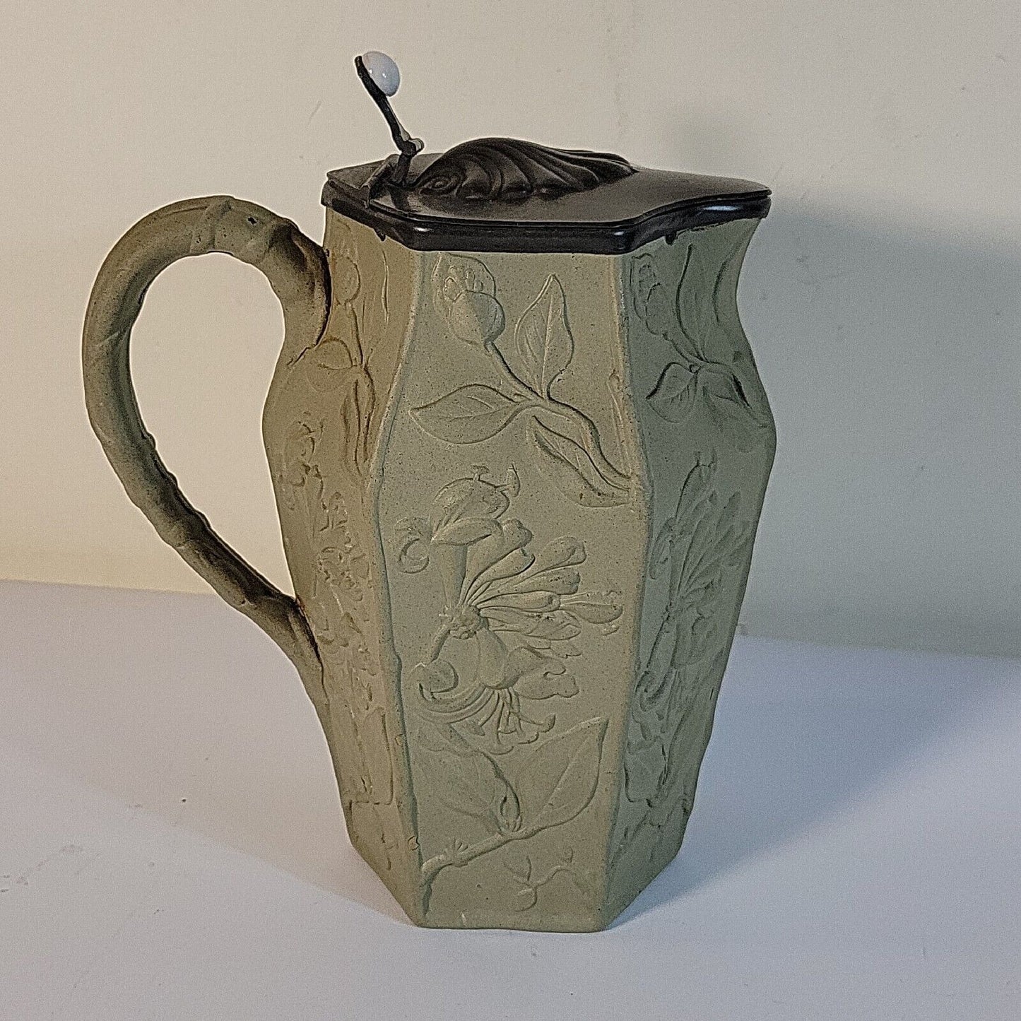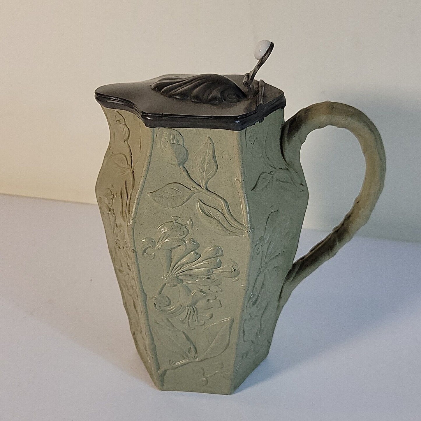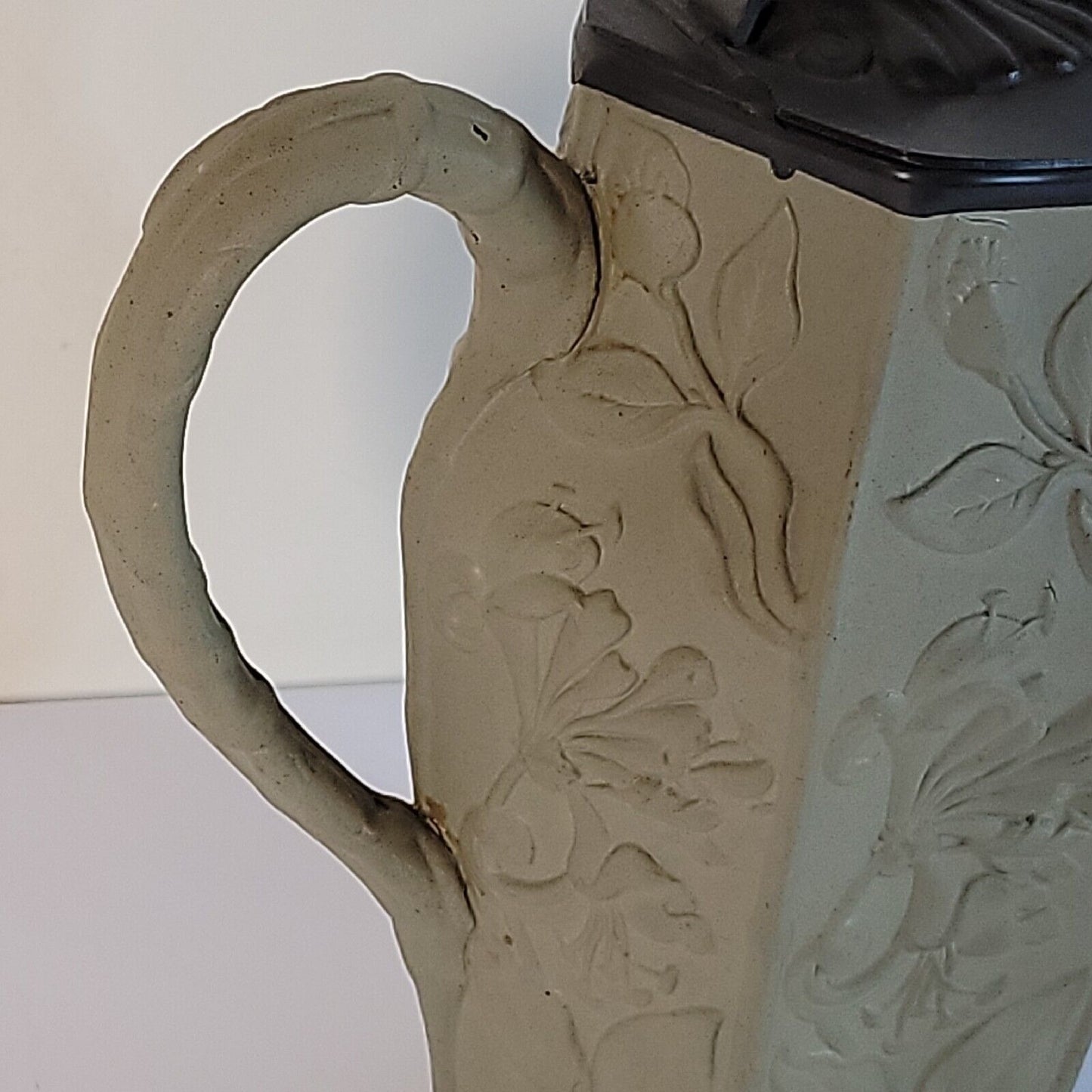 1835 William Ridgway Drabware Pitcher w/ Pewter Lid W Ridgway England
