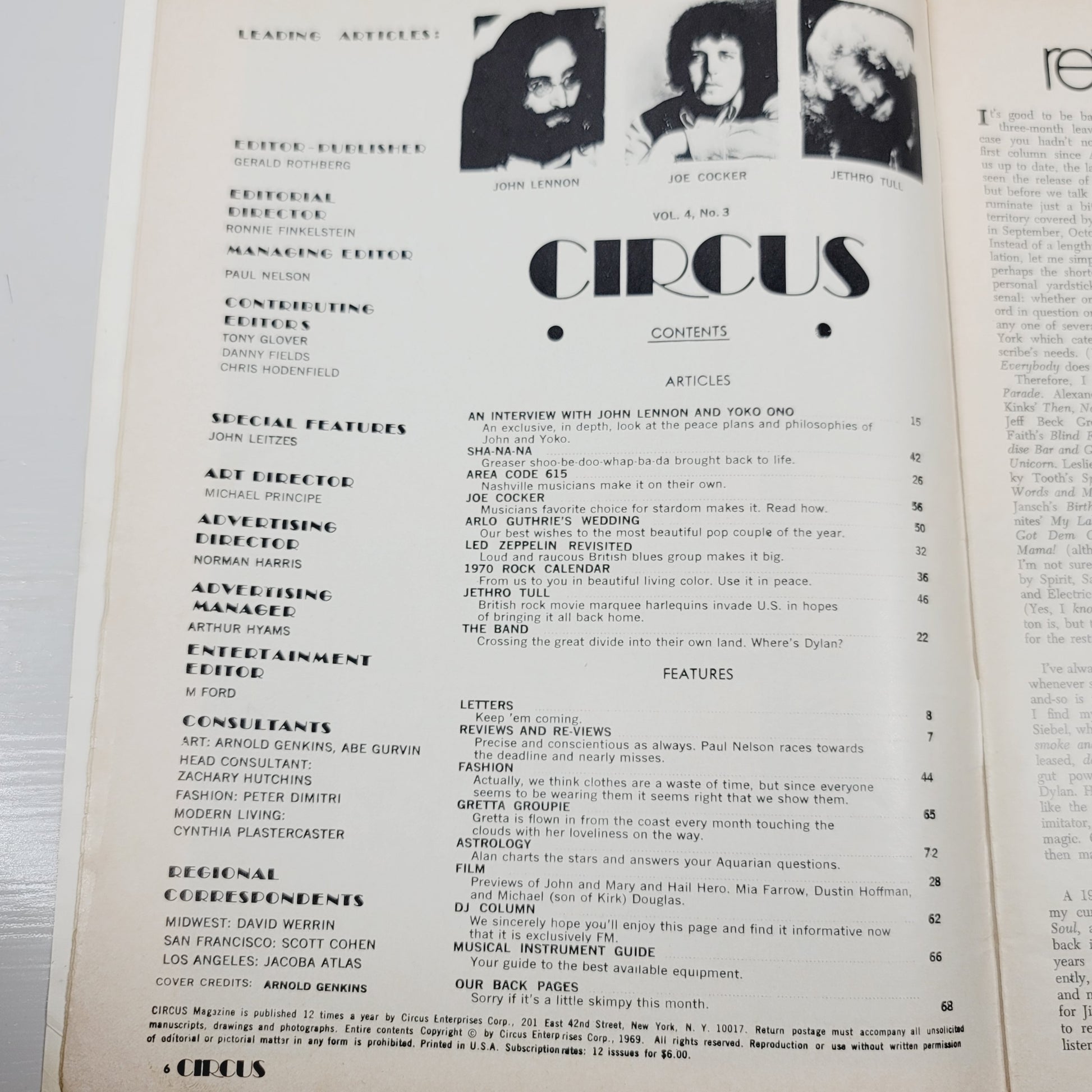 Step back into the heart of rock ‘n’ roll history with this December 1969 issue of Circus Magazine, one of the earliest editions from the iconic music publication. Packed with vintage photos, exclusive interviews, and classic coverage of the late '60s music scene including John Lennon, Led Zeppelin and Jethro Tull.