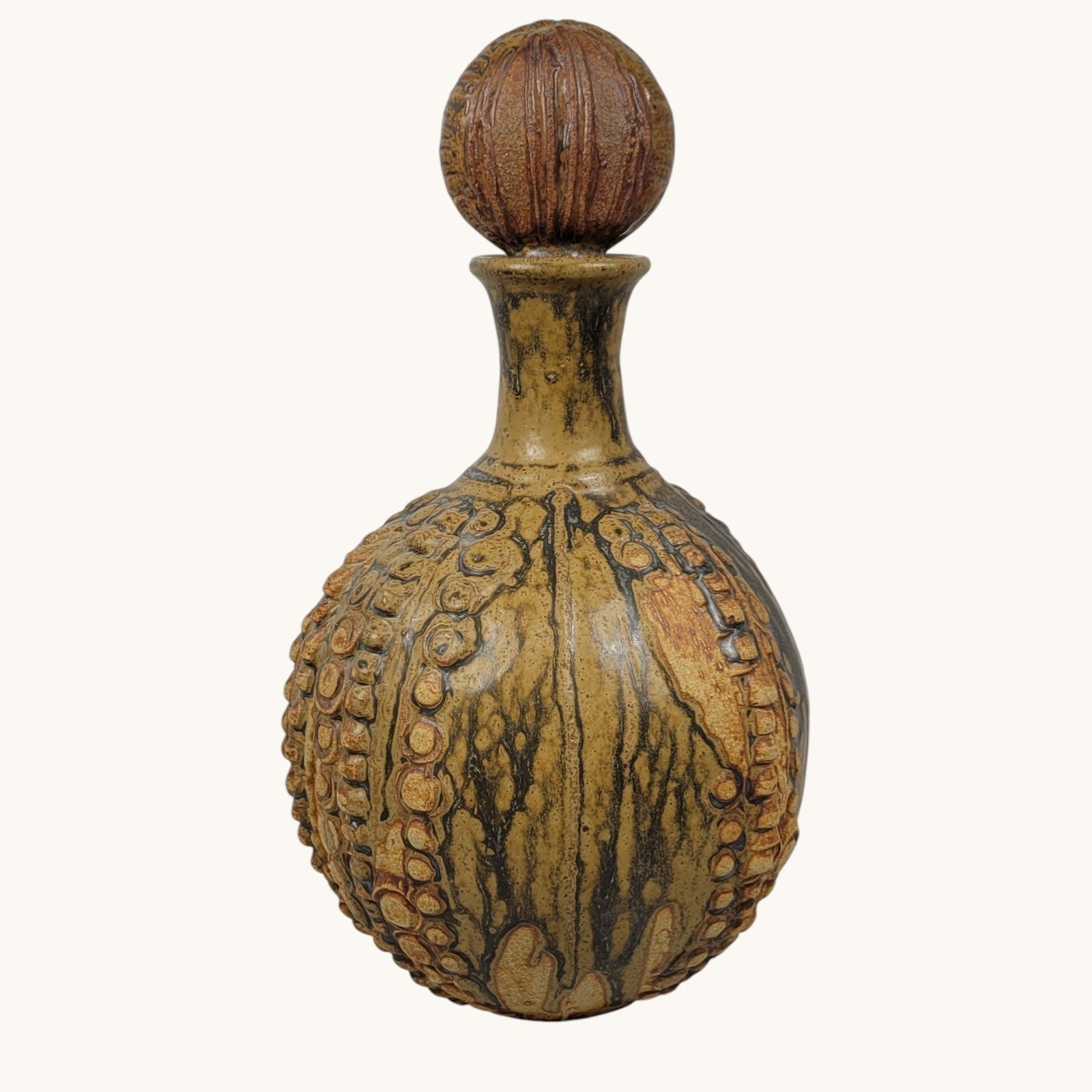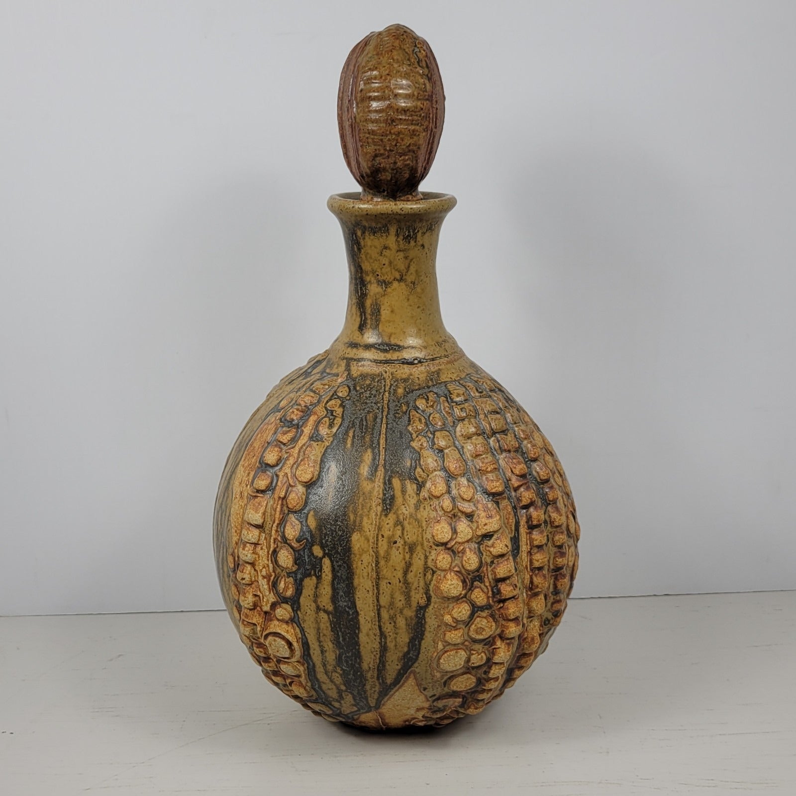 Decanter Bernard Rooke Vintage Mid-Century English Brutalist Pottery Signed 12"