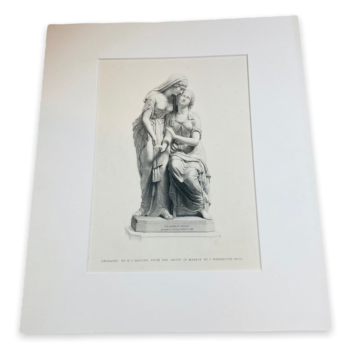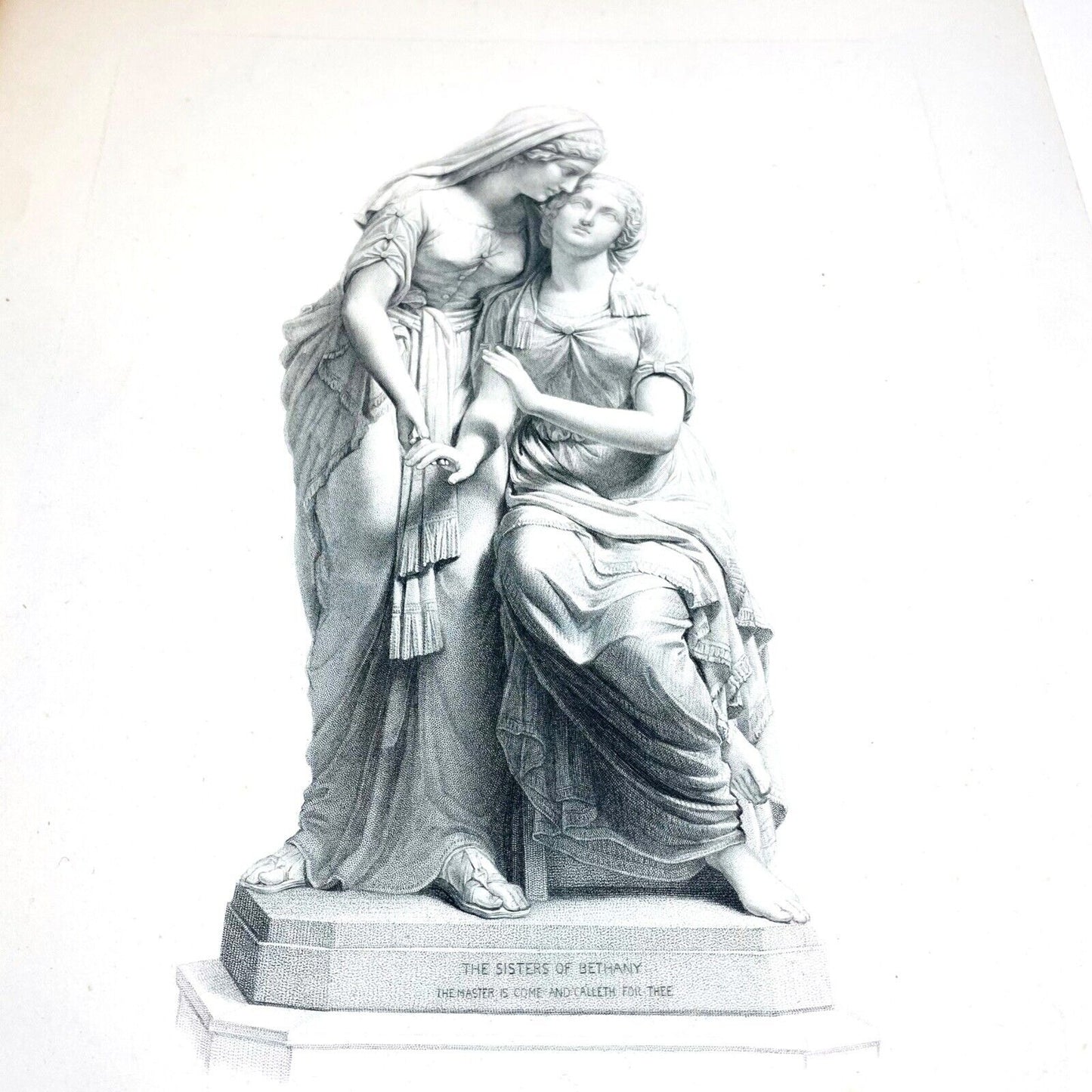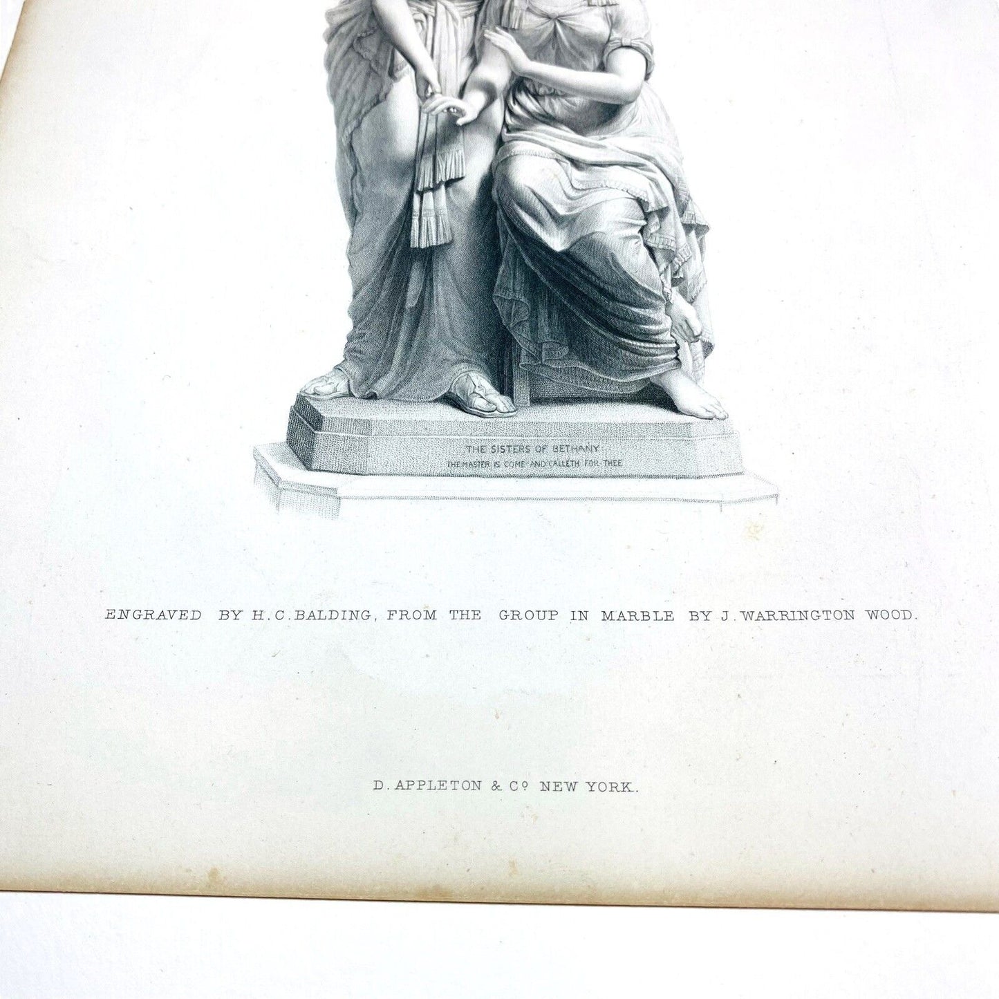Engraving "The Sisters of Bethany" 1860 H.C. Balding Matted Religious Christian