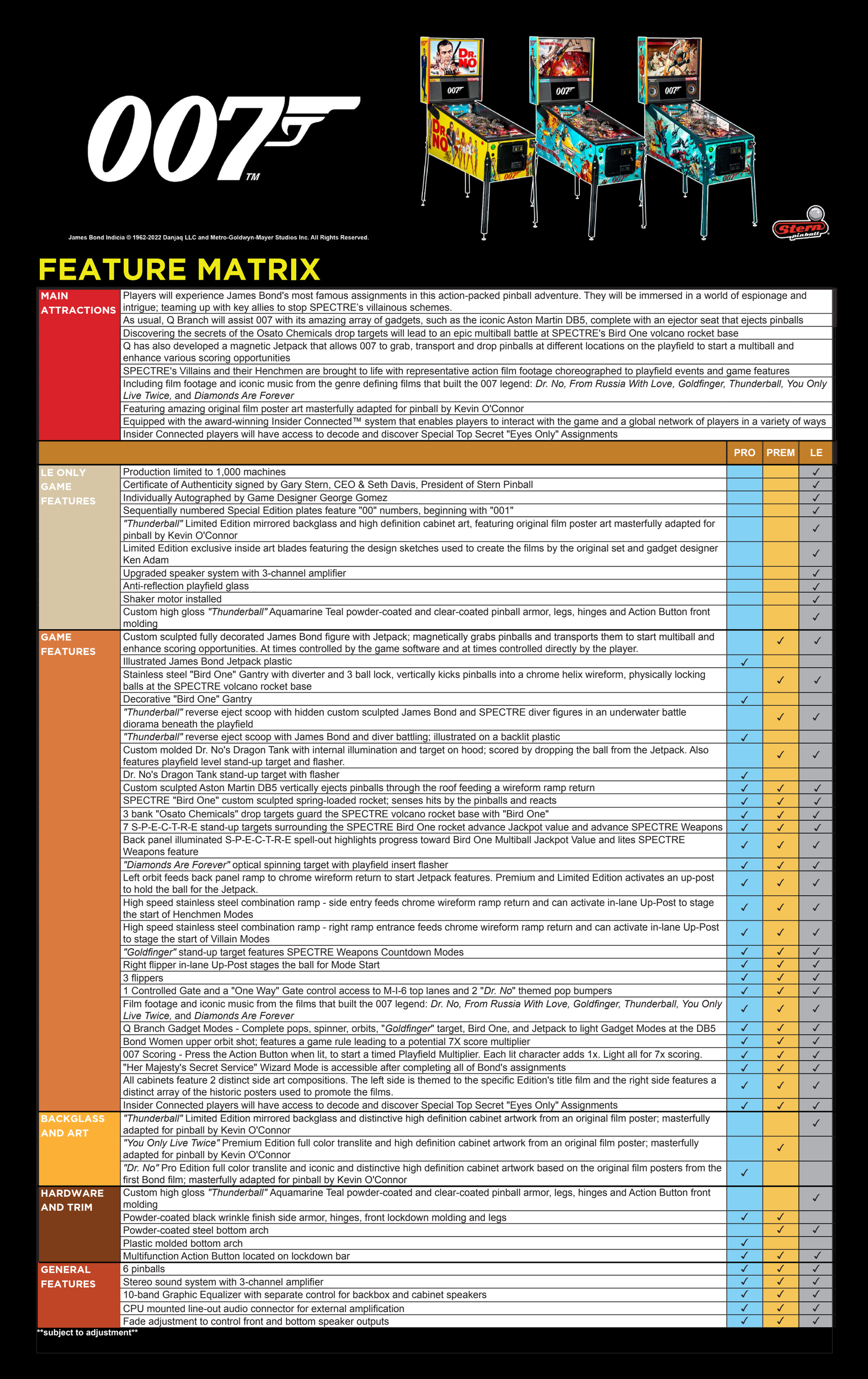 This is the Stern James Bond 007 Thunderball LIMITED EDITION Pinball Machine is fully loaded with all the upgrades, production number 956 of only 1000 made worldwide! Released in 2022, this collectible Limited Edition celebrates Sean Connery in Thunderball with incredible artwork, exclusive trim, and premium features.