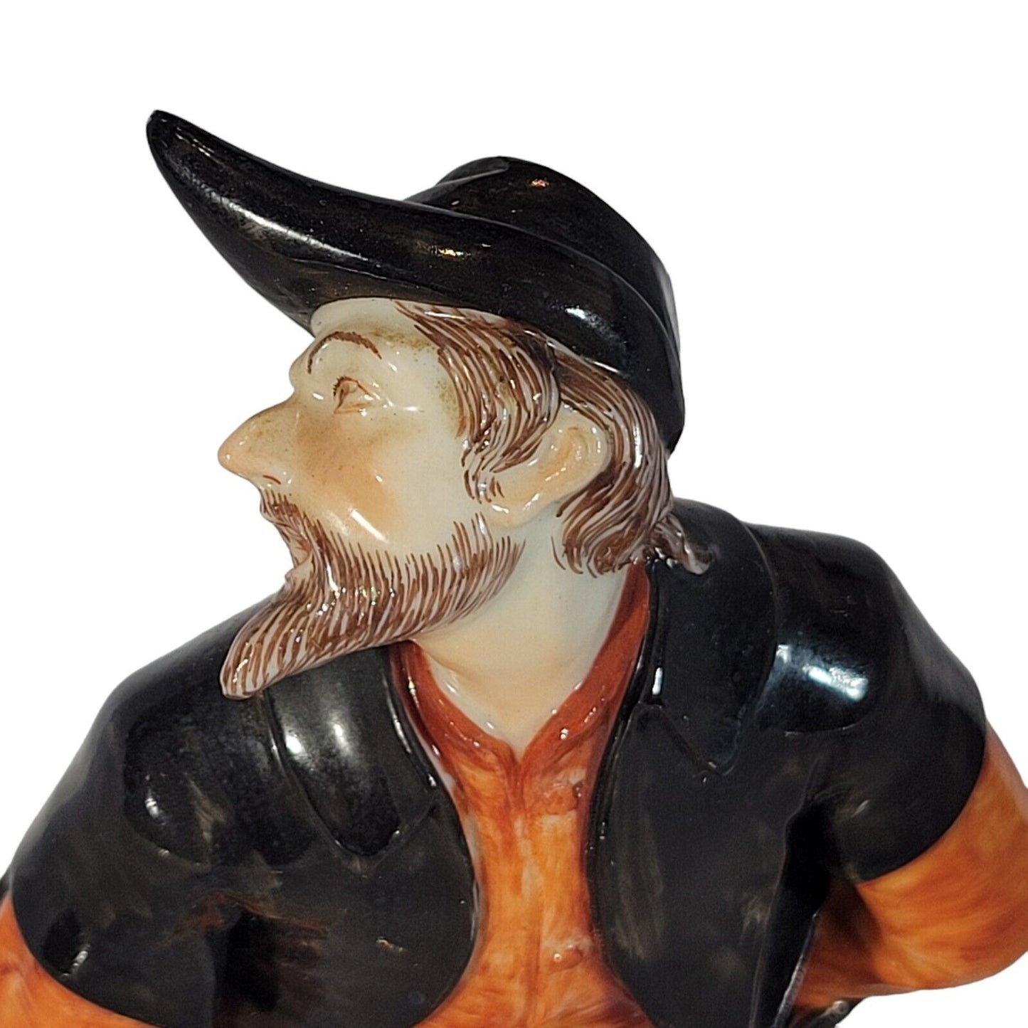 This is a superb figurine from the Commedia dell'arte aka the Italian Comedy made by Nymphenburg in the early 20th century. This figure is of Pantalone ( Pantaloon ) and is one of the most important principal characters found in commedia dell'arte. With his exceptional greed and high in society he is the "money" in the commedia world. His full name, including family name, is Pantalon de' Bisognosi , Italian for 'Pantalone of the Needy'. The figurine is superbly modeled and hand painted perfectly. First designed by the best porcelain modeler of the 18th century - the famous Franz Anton Bustelli - it is just one elgant and fun piece to look at. The figure is 6.875 inches tall, 2.875 inches wide and 4.25 inches deep. The piece is marked with the impressed shield on top of the base as well as an impressed shield mark underneath and impressed numbers 57 over 2. He displays perfectly!
