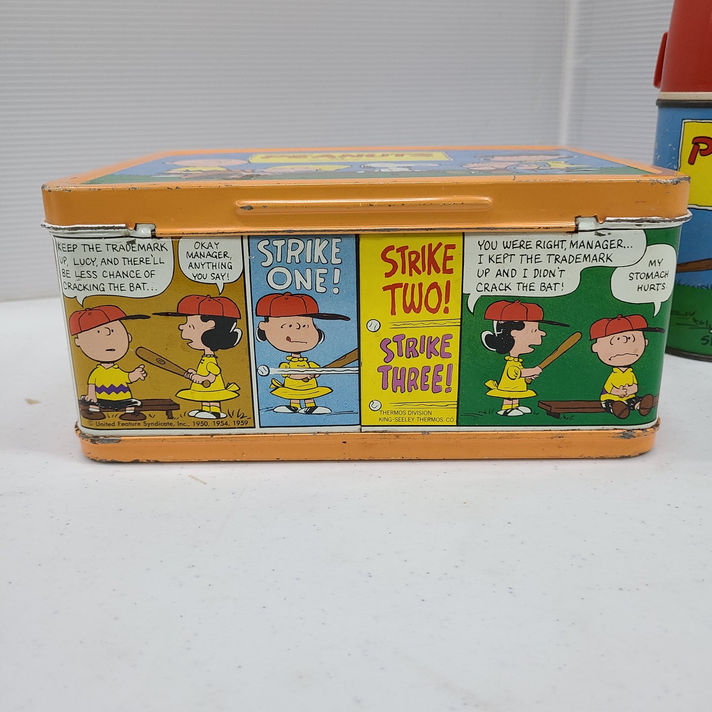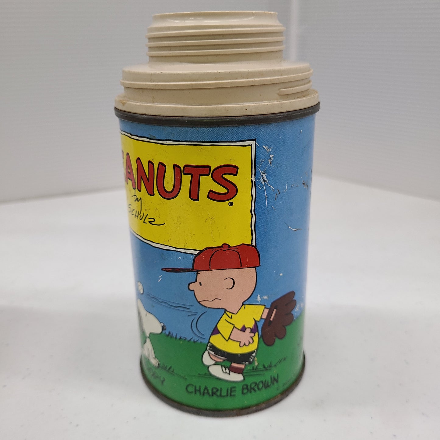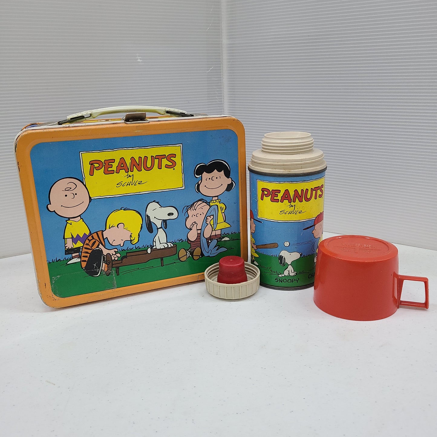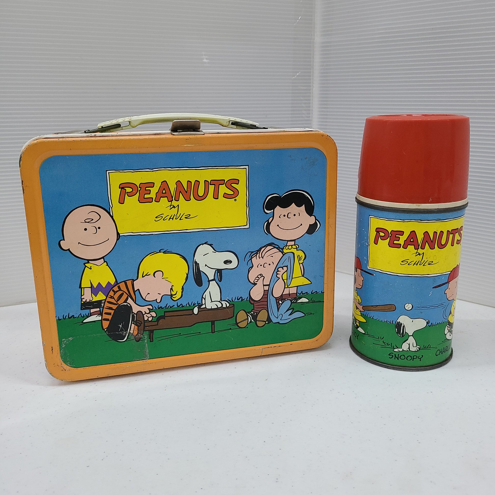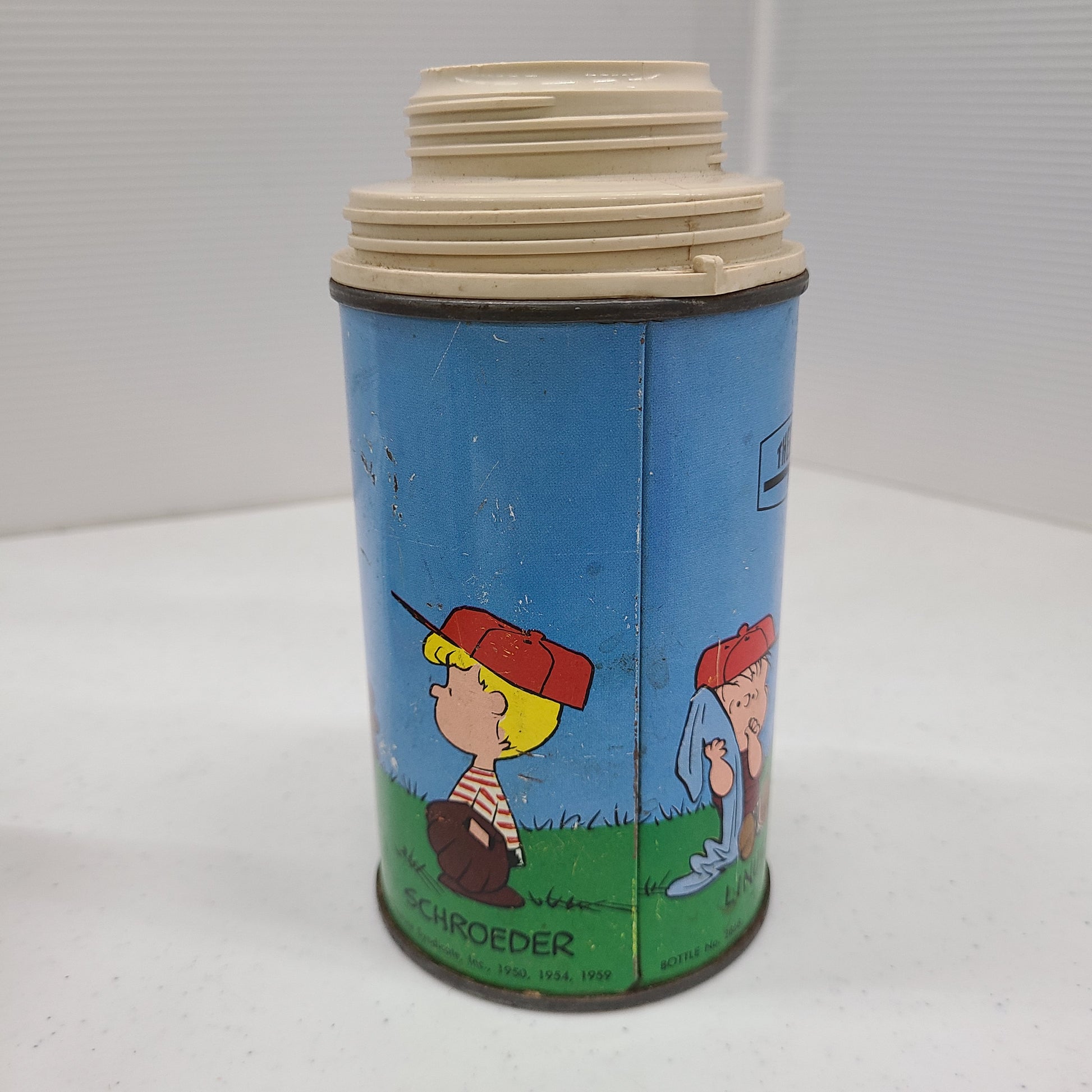 Vintage 1959 PEANUTS Comic Strip Charlie Brown Snoopy Metal Lunch Box w/ Thermos