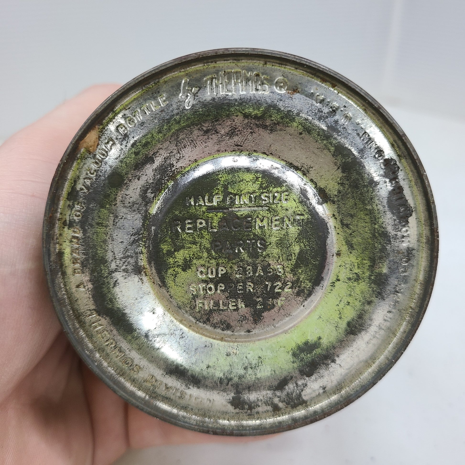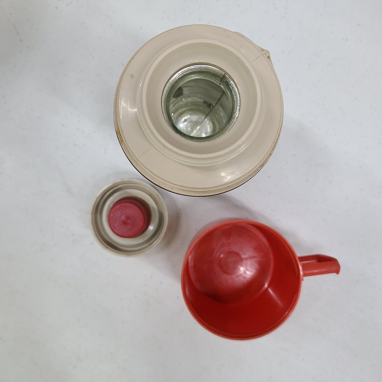 It does have some wear and a little bit of rust on the inside but the plastic handle is in good shape and so is the thermos cup